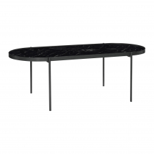 Ovaler Couchtisch aus schwarzem Metall der dänischen Marke Hübsch. Ihr Wohnzimmer wird mit diesem Tisch ein eleganter Retro-Traum. Fühlen Sie sich frei, mit Kerzenleuchtern in den Trendmetallen Kupfer oder Messing zu kombinieren. Wir glauben auch, dass Sie alles haben, um Steinzeug und Details in trendigem Terrazzo zu setzen. Art Deco ist genau richtig und dieses Stück ist geometrisch perfekt!