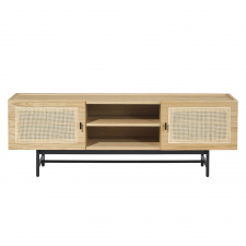 Die stilvollen Türen aus natürlichem Rattan verleihen dem TV-Board einen einzigartigen und modernen Look, während sie gleichzeitig eine warme und einladende Atmosphäre im Raum schaffen. Dank seines zeitlosen Designs und der neutralen Farben lässt sich dieses Möbelstück problemlos mit verschiedenen Einrichtungsstilen und anderen Möbeln kombinieren.